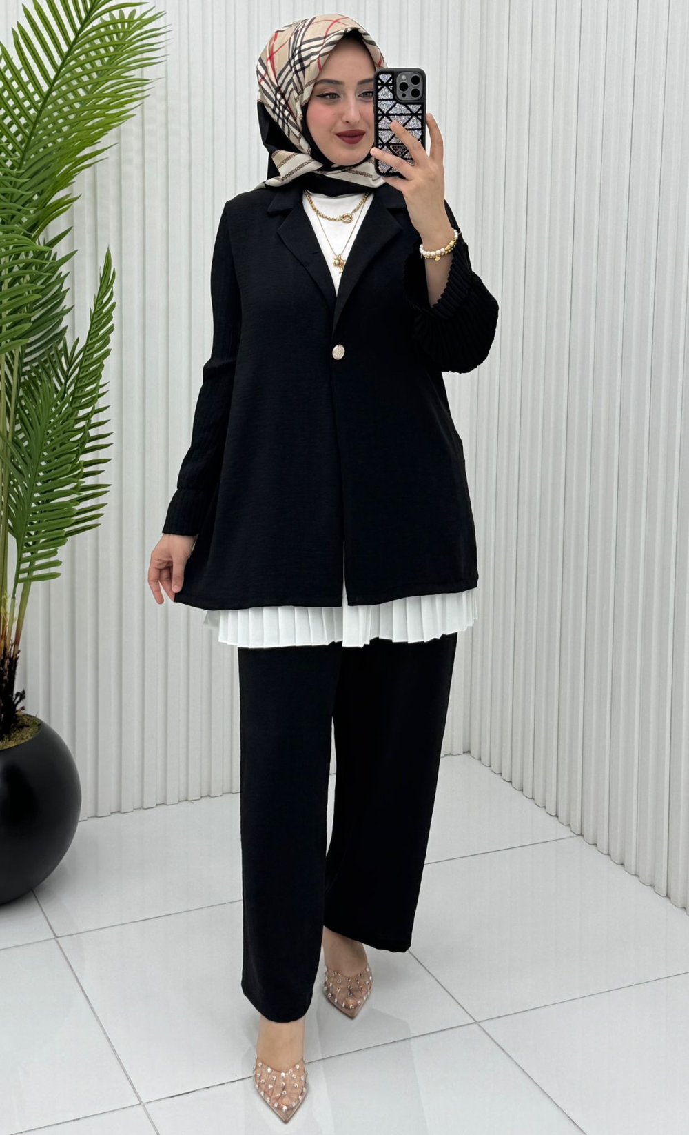 Burcu Takım, hem iş hem de günlük hayatınızda rahatlıkla tercih edebileceğiniz çok yönlü bir parçadır. Şıklığı konforla buluşturan bu tasarım, sezonun en gözde modellerinden biri olacak!