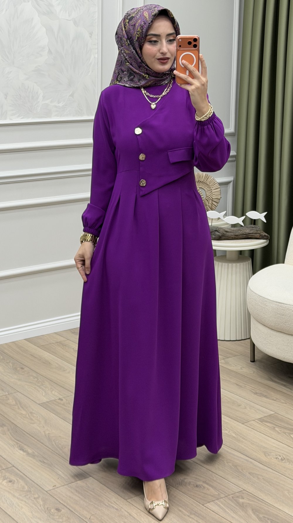 Yüsra Elbise Koyu Mor