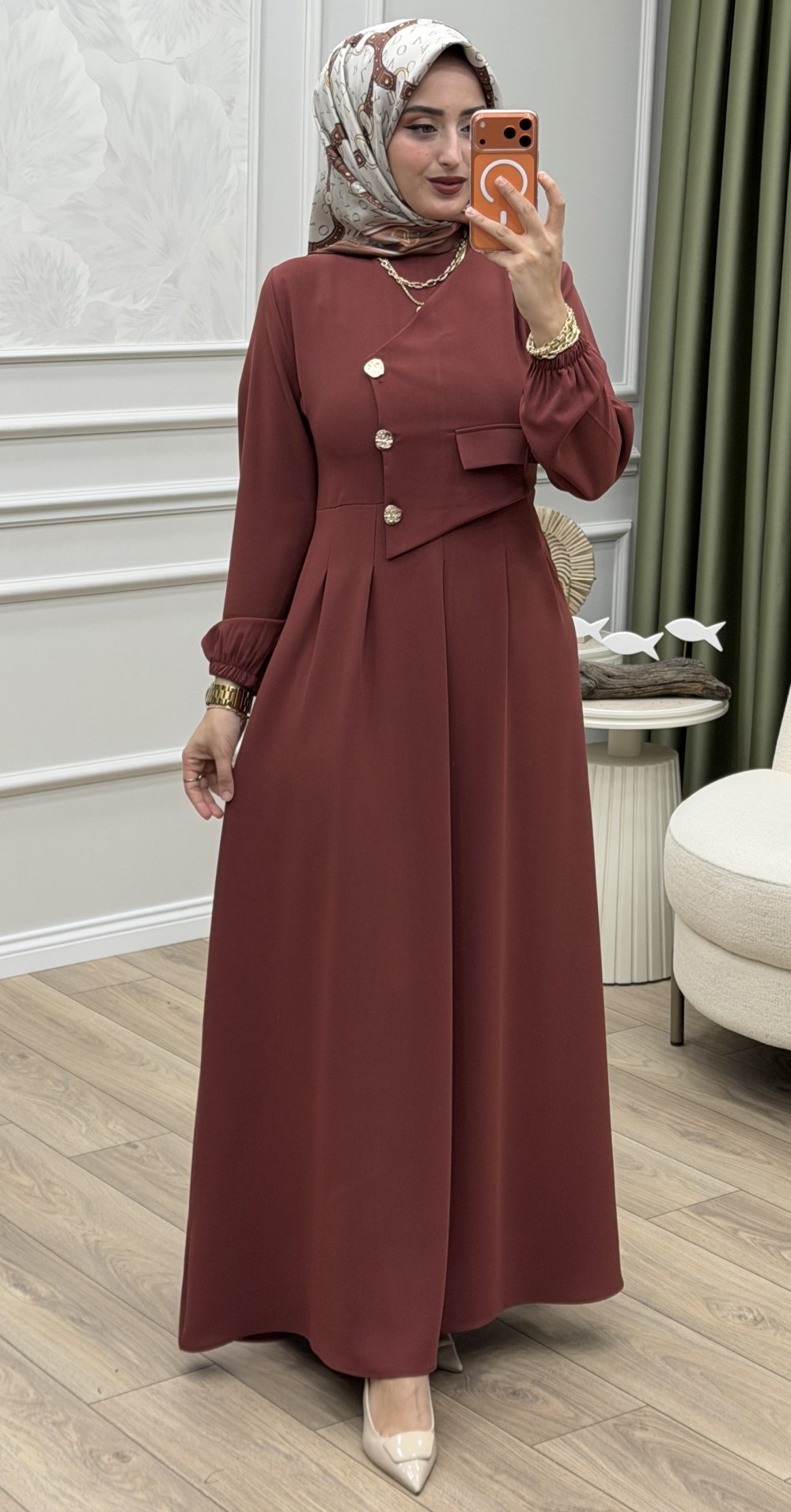 Rahatlık ve şıklığı bir araya getiren Gönül Elbise,sade ama zarif duruşuyla günlük kombinlerinizi güçlendiriyor. Yumuşak kumaşı ve esnek yapısı sayesinde gün boyu konfor sunarken, modern kesimiyle stil sahibi bir görünüm yaratır.