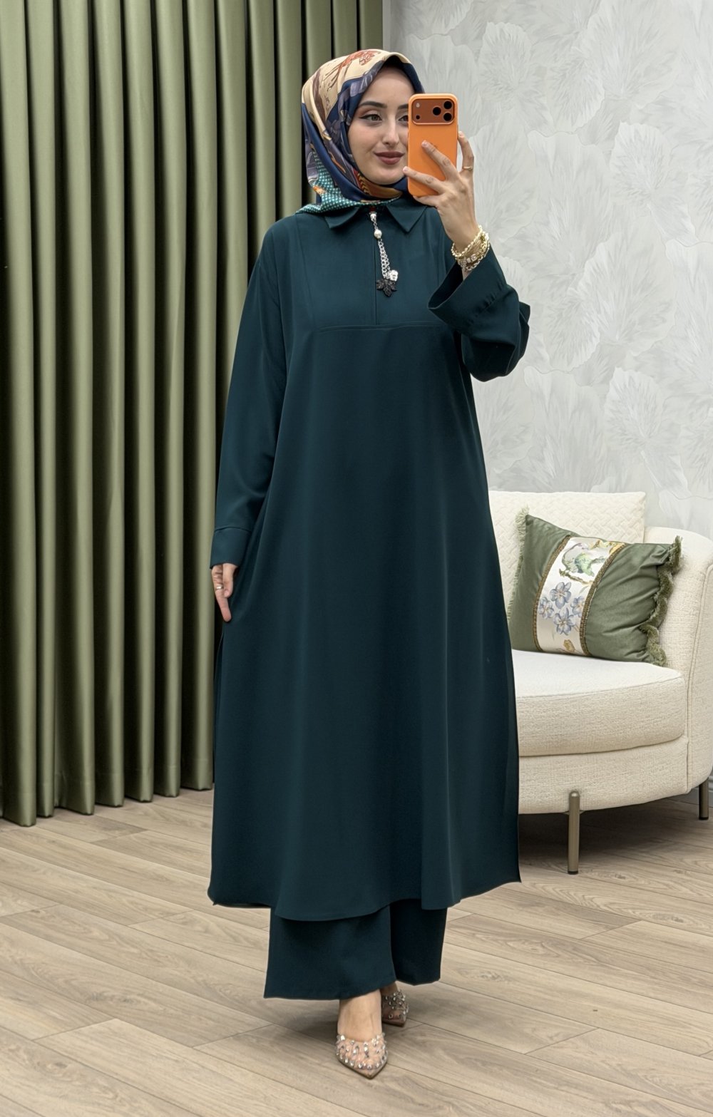 Hicran Takım,hem iş hem de günlük hayatınızda rahatlıkla tercih edebileceğiniz çok yönlü bir parçadır. Şıklığı konforla buluşturan bu tasarım, sezonun en gözde modellerinden biri olacak