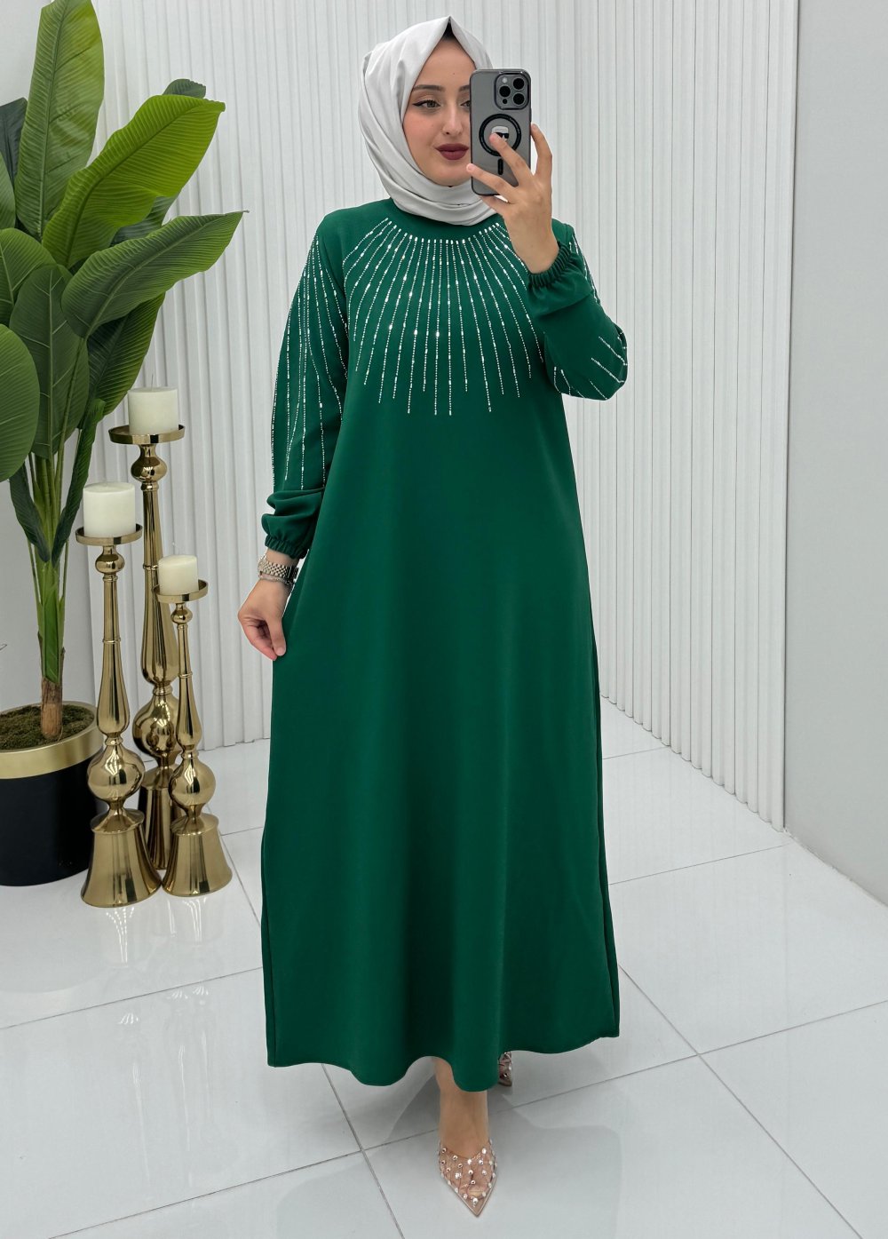 kesimiyle stil sahibi bir görünüm yaratır. Zümrüt rengin sofistike etkisi, her ortamda şıklığı yakalamanızı sağlar.