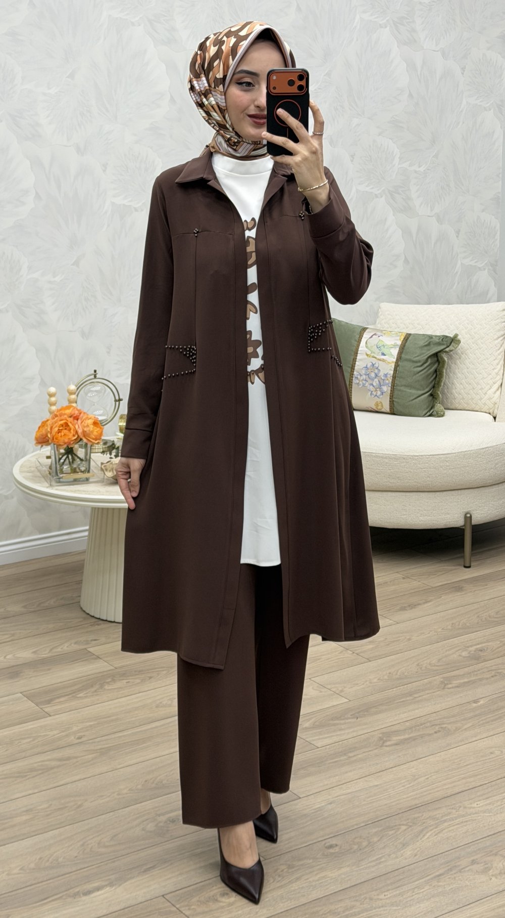 Pera 3 lü Takım,hem iş hem de günlük hayatınızda rahatlıkla tercih edebileceğiniz çok yönlü bir parçadır. Şıklığı konforla buluşturan bu tasarım, sezonun en gözde modellerinden biri olacak